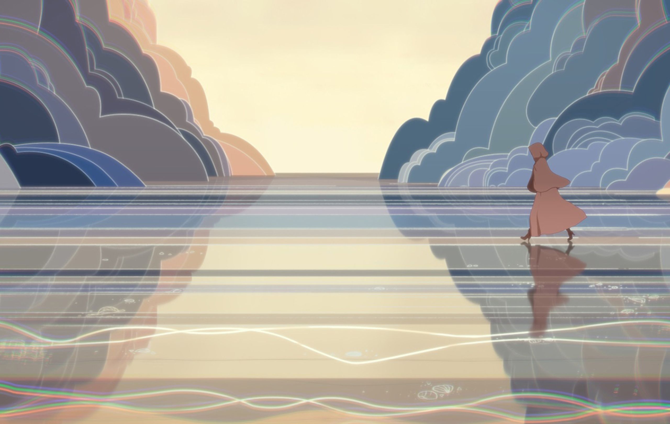 Dès les premières minutes, le film emmène dans une aventure visuelle et sonore complètement folle, rendant visible Internet, les réseaux sociaux et l'informatique d'une manière ébouriffante (ce que le réalisateur avait déjà fait dans Summer Wars, que j'avais adoré aussi). La scène où Suzu se connecte pour la première fois à U est faite avec un souci du vrai complètement fou, aussi bien dans le design des appareils (et même celui de l'URL de connexion !) que dans les interactions utilisateur à la beauté lumineuse.
